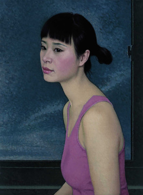 答:2000年左右,有一个学生来找过我,我对她印象深刻,她的形象符合我的要求。2004年我想画年轻人肖像,表现时代的变迁。我就请那个学生做模特。《肖像2004》作于2004年,跟《蜻蜓》是同一个模特。这个形象有现代特点。